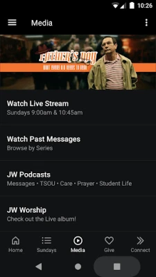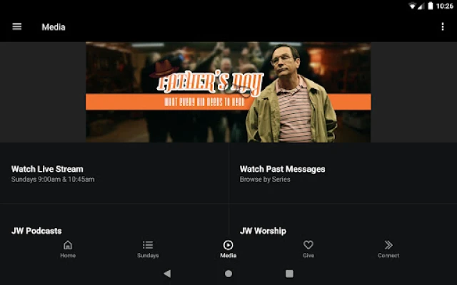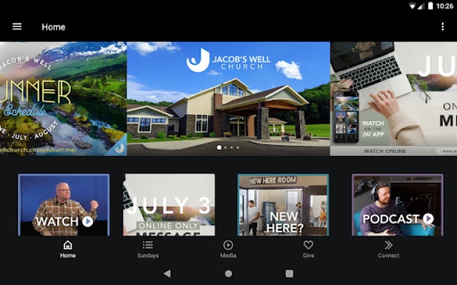 - Watch Sunday services via Livestream - Watch or listen to past messages, worship & podcasts - Stay up to date with weekly notifications - Share your favorite JW content via Text, Facebook, Instagram or Email