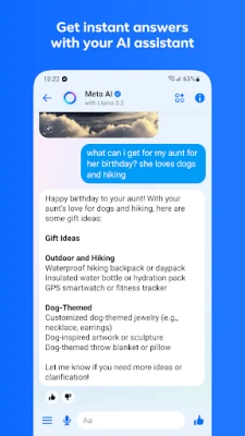 Meta AI is your assistant that can answer any questions, give you advice, help with homework, and more.