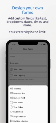 - Dynamic and Custom Fields: Create unique forms tailored to your needs. Include text fields, selection options, dates, times, dropdowns, and more.