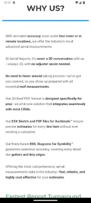 Access detailed reports suitable for sales, materials estimation, and insurance purposes.