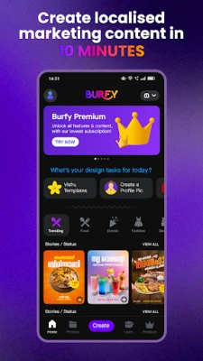 Design marketing content effortlessly in your local language with Burfy, now upgraded with powerful Premium features! Whether you're a small business owner, entrepreneur, or personal creator, Burfy helps you design posters, banners, and social media content in minutes with no design skills needed.