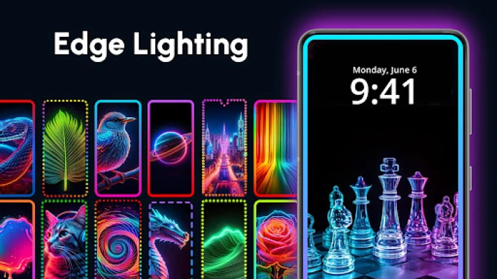 Stop settling with low quality wallpapers! You will love high-quality combined with LED Edge Lighting Wallpaper Live effects! You can proudly showcase your personal photos with glowing animations took top and bottom.