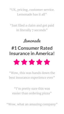 • No Hassle: There's no need to wait around for snail mail or talk on the phone w/ agents - get a policy with the Lemonade app whenever and wherever you are.