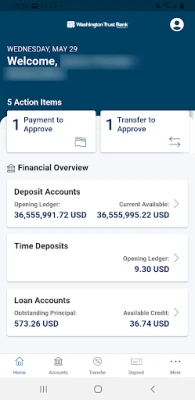Our free mobile business banking app is available for Washington Trust Bank customers using Business Digital Banking.